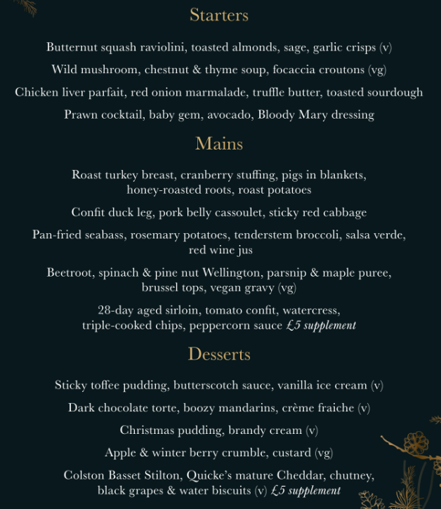 Cost: £50 for three courses (see menu here)+ welcome drink (bottle of beer, house red/white, soft drink)*